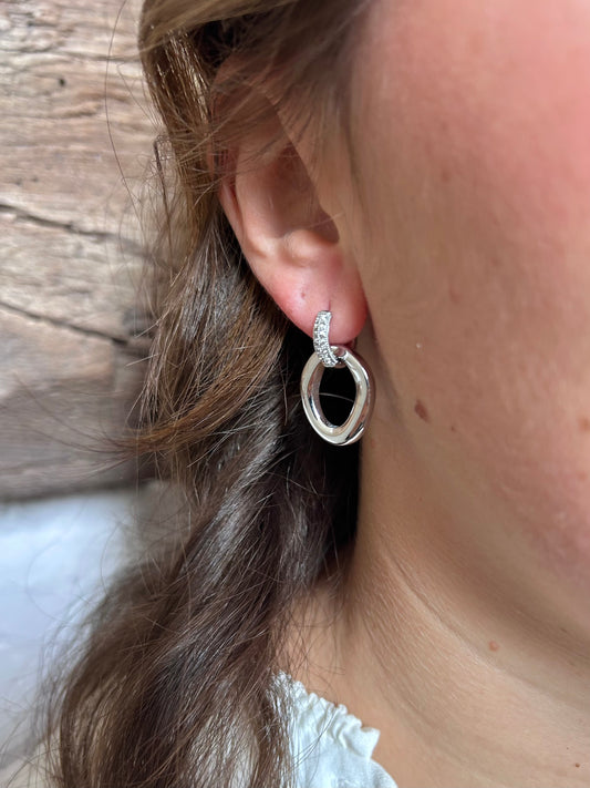 Boucles pendantes ovales et zirconium