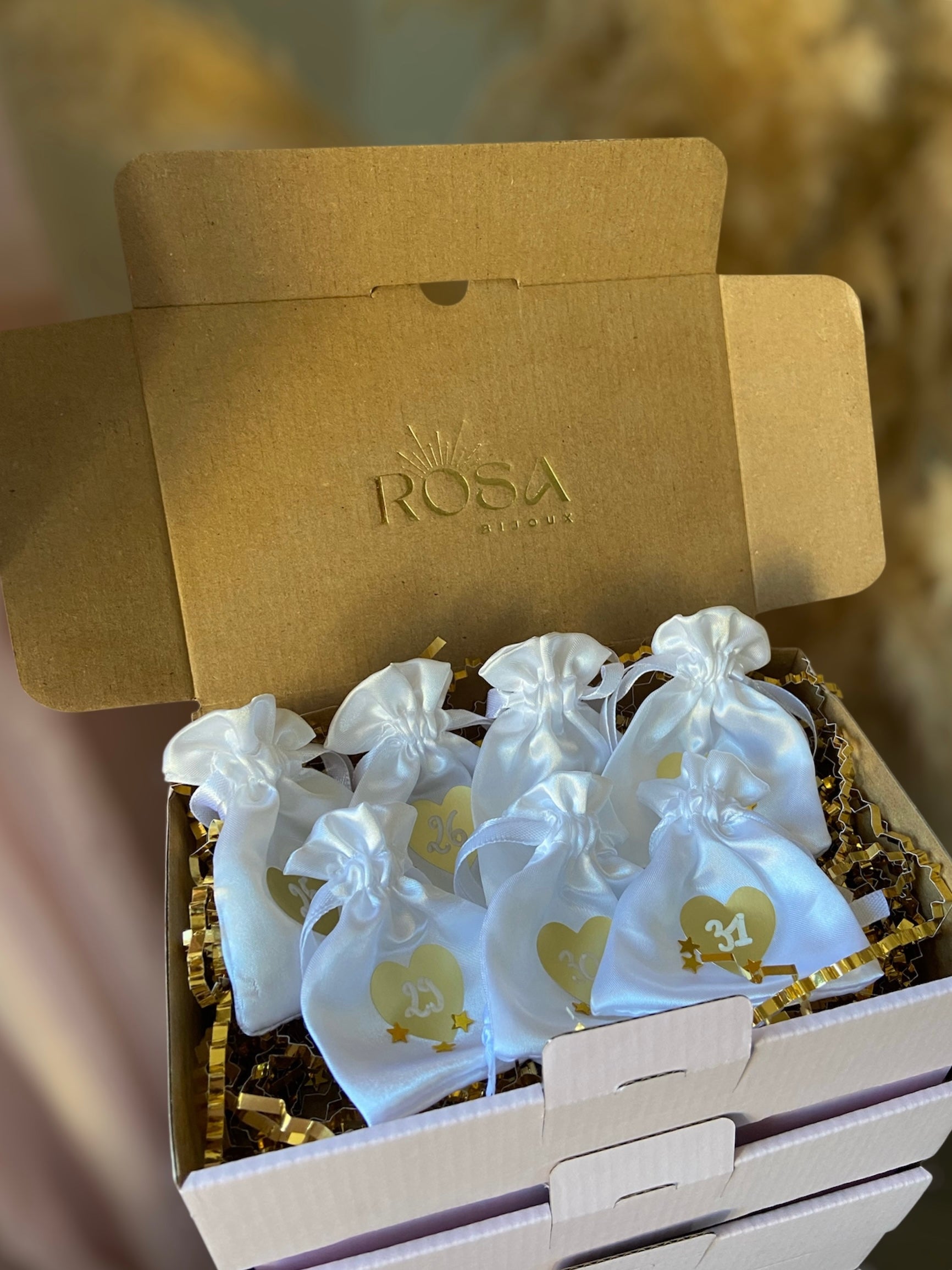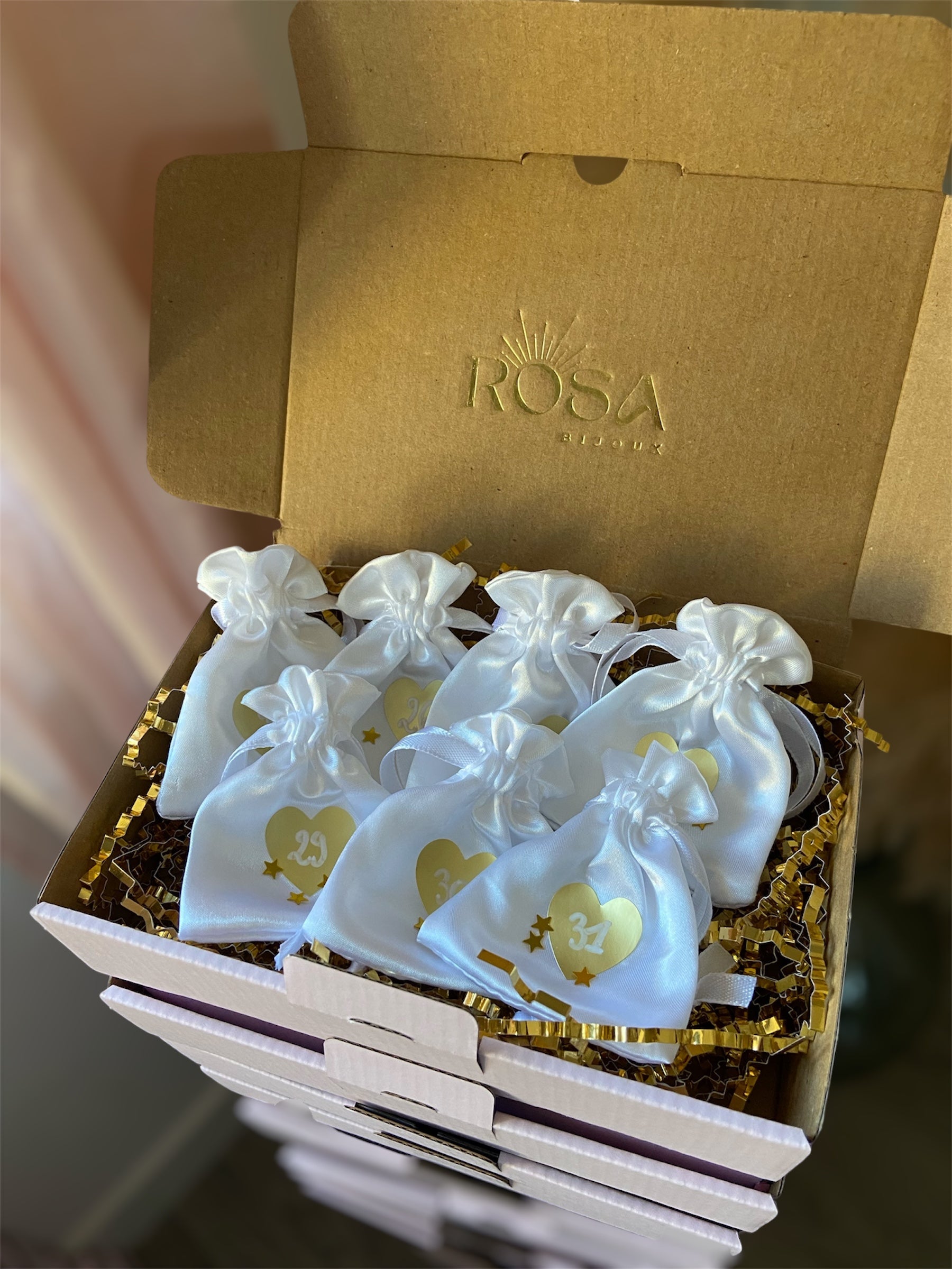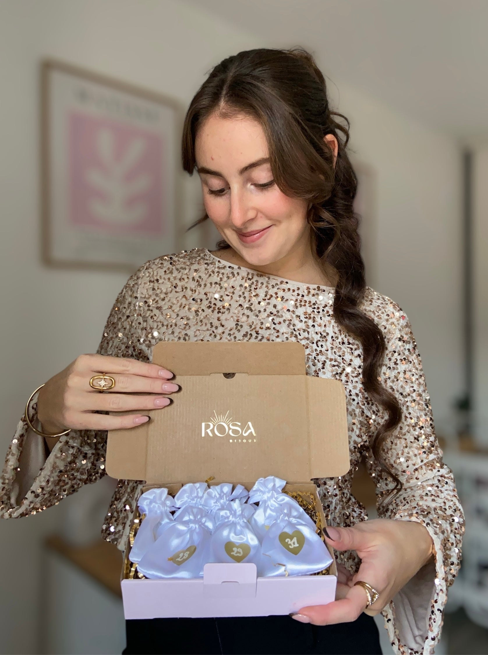 Découvrez le tout premier Calendrier de l’Après Rosa Bijoux, pensé pour prolonger la magie des fêtes avec 7 bijoux exclusifs en acier inoxydable, disponibles en doré uniquement.